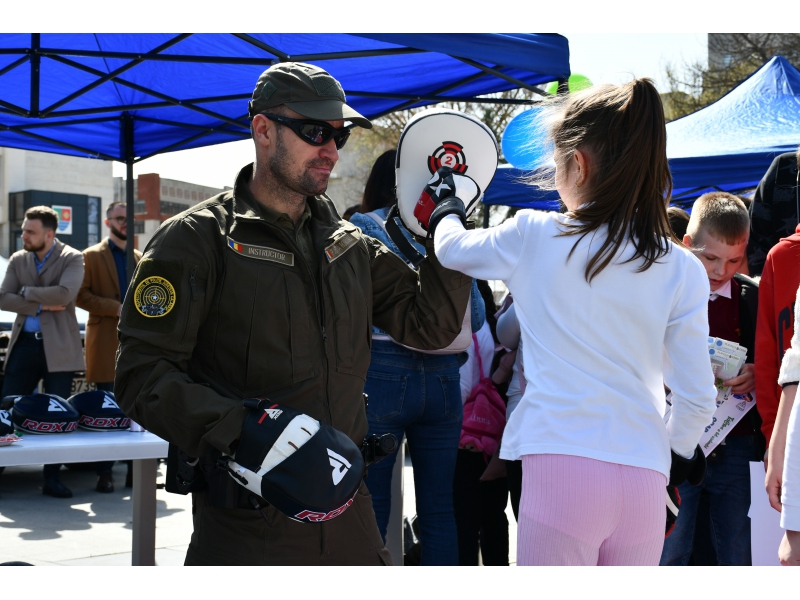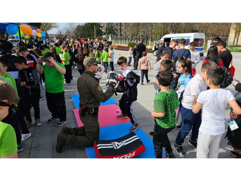 Polițiștii din cadrul Biroului pentru Protecția Animalelor au dezbătut cu cei prezenți despre legislația specifică domeniului lor de activitate, iar polițiștii din cadrul Biroului Pregătire Profesională le-au prezentat materialele și modurile în care polițiștii se pregătesc, exersând și cu cei mici tehnici de autoapărare.
