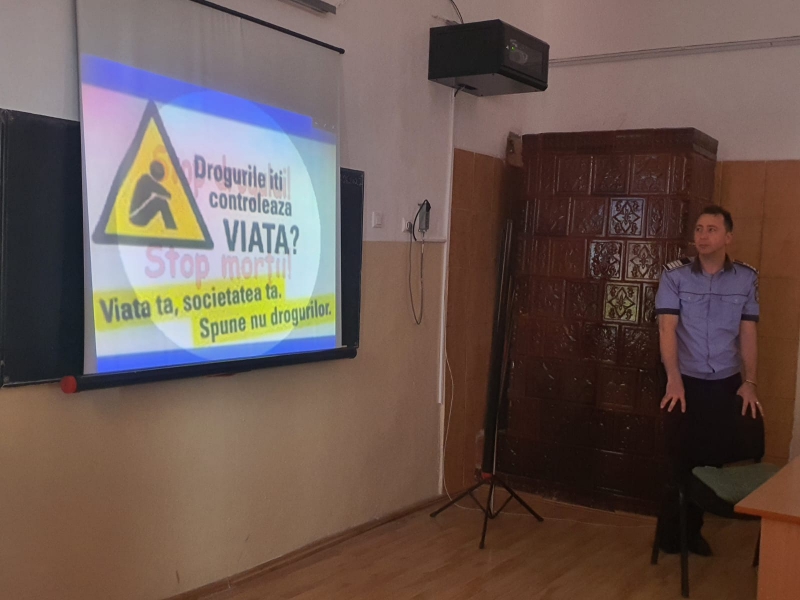 Polițiștii Secției 4 Poliție Rurală Dragalina s-au întâlnit cu elevii Școlii Generale nr. 1 Ștefan Vodă, scopul activității fiind informarea tinerilor cu privire la situațiile de risc legate de consumul de droguri și alcool.