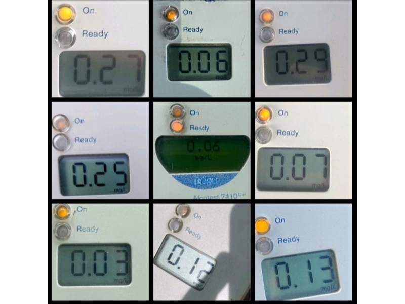 În urma testării cu aparatul etilotest a rezultat o alcoolemie de 0,57 mg/l alcool pur în aerul expirat.