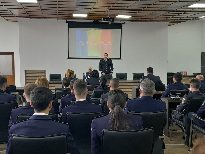 La sediul Inspectoratului de Poliţie Judeţean Călăraşi a fost organizată o sedință festivă, cu ocazia Zilei Naționale a României, în cadrul căreia 13 ofiţeri şi 26 de agenţi de poliţie au fost avansaţi înainte de îndeplinirea stagiului mimin, pentru merite deosebite.