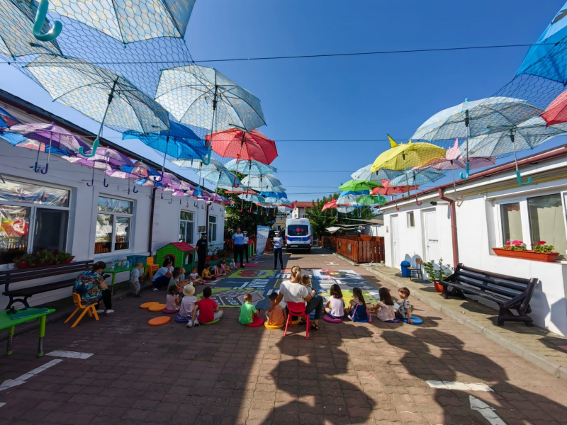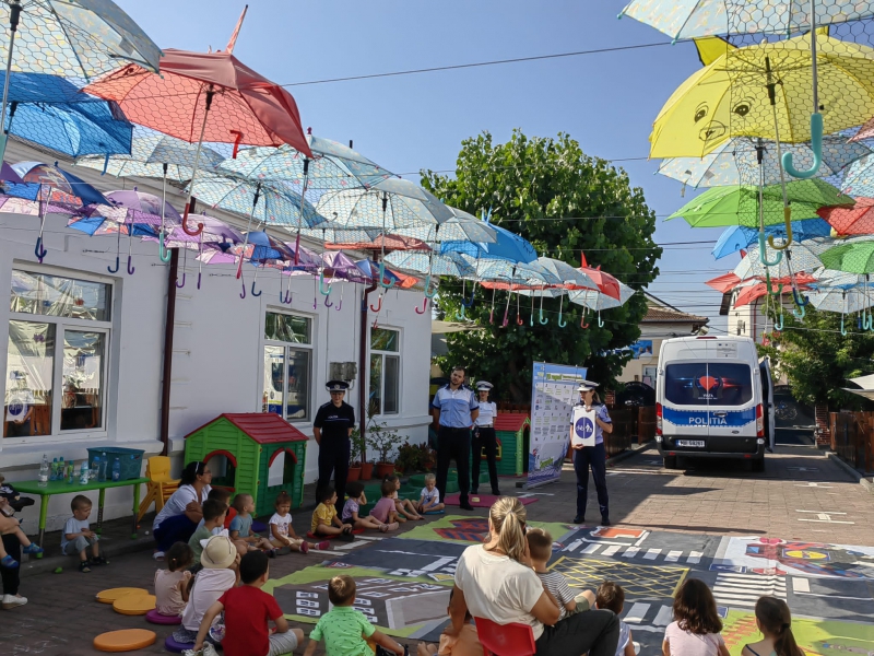 Cu această ocazie, copiii au aflat de la polițiști ce reguli de circulație trebuie să respecte pe drumul către grădiniță, locul de joacă sau către casă. Celor mici le-au fost prezentate semnele de circulație și au fost invitați într-un orășel miniatural, în care au aplicat cele învățate pentru a demonstra că vor deveni pietoni responsabili.