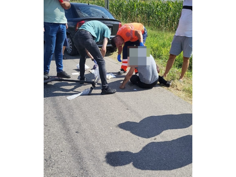 Accidentul a implicat un autoturism și un conducător de trotinetă electrică, cel din urmă fiind rănit. Victima prezenta o plagă la nivelul capului și acuza dureri în zona umărului.