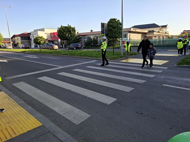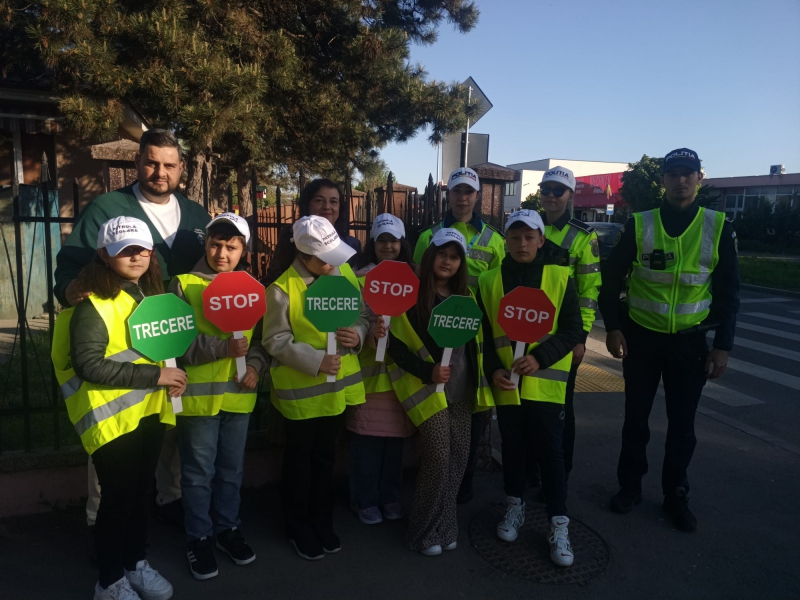 Pentru a implica direct elevii în menținerea siguranței rutiere, aceștia au fost echipați cu palete de dirijare, veste reflectorizante și șepci, inscripționate cu „PATRULA ȘCOLARĂ” și au asigurat, împreună cu polițiștii, traversarea copiilor în siguranță pe trecerile de pietoni din zona școlii.